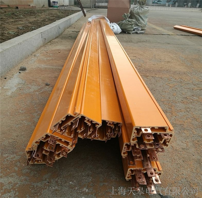1、導管:是一根半封閉的異形管狀部件,是安全滑觸線的主體部分。其內(nèi)部可根據(jù)需要嵌設2-9根裸銅排作為供電導線,各導軌間相互絕緣,并與外殼絕緣,從而保證供電的安全性。并在帶電檢修時有效地防止檢修人員觸電事故。本廠生產(chǎn)的導管每條長度4m,可以連接成任意需要長度,普遍導管制作成直線形,也可以按特殊需求制成圓弧形等。